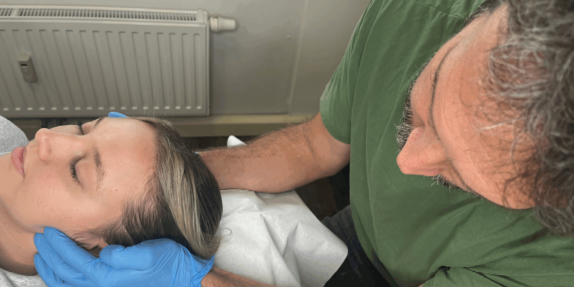 Wir starten mit einer sehr genauen Untersuchung eures Kiefers, Gesichts und Nackens. Euer Physiotherapeut, zum Beispiel Armin Wölger, schaut sich eure Haltung an, wie ihr den Mund bewegt und wo Muskeln besonders verspannt oder Gelenke blockiert sind. Wir suchen alle möglichen Auslöser – vom unbewussten Zähneknirschen bis zu Fehlstellungen in den oberen Halswirbeln.