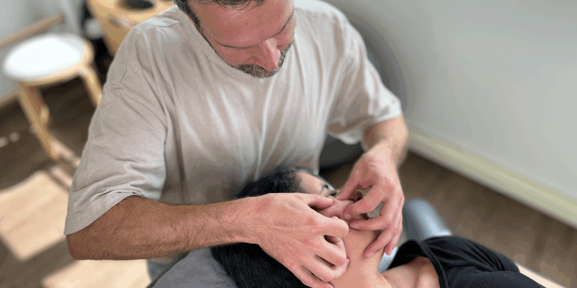 Armin Wölger: „Am Anfang steht immer eine ausführliche Befundung. Wir schauen uns nicht nur den Kiefer an, sondern den gesamten Körper. Wie ist die Haltung? Wie bewegt sich die Halswirbelsäule? Welche Spannungsmuster gibt es? Dann erstellen wir ein individuelles Konzept. Die Basis ist die Manuelle Therapie, um Blockaden zu lösen und die Beweglichkeit zu verbessern. Dazu kommen Entspannungstechniken für verspannte Kaumuskeln, gezielte Übungen, die die Patienten zu Hause umsetzen können, und – je nach Bedarf – spezielle Methoden wie: